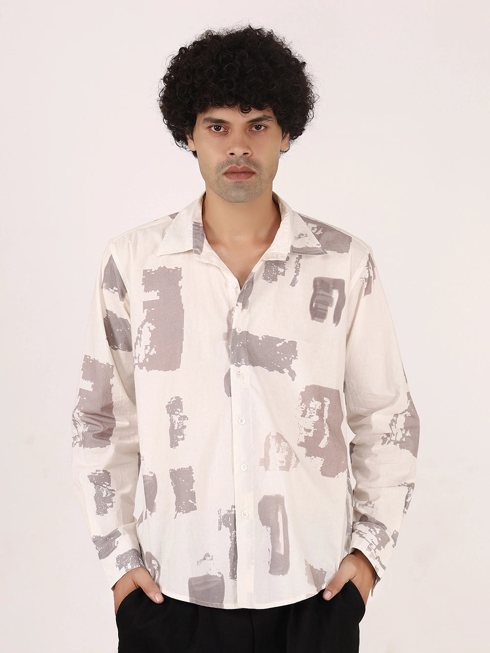 Off-White Brushstroke Printed Cotton Full Sleeve Shirt