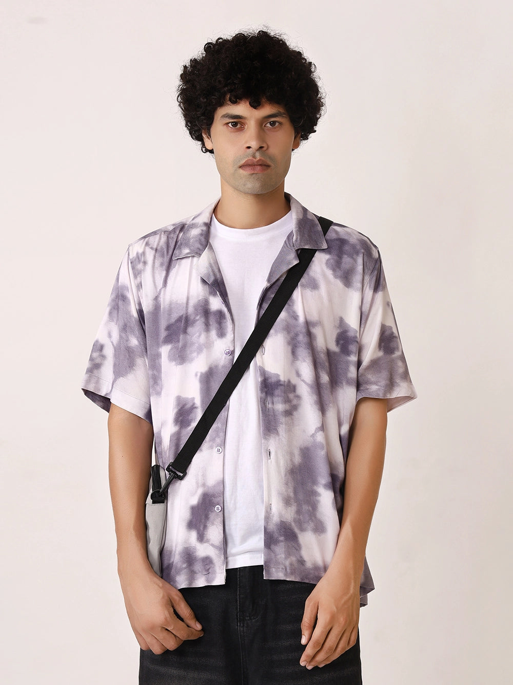 Purple Cloudburst Viscose Resort Shirt with Cuban Collar